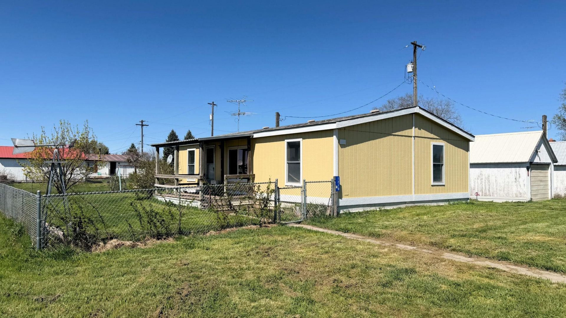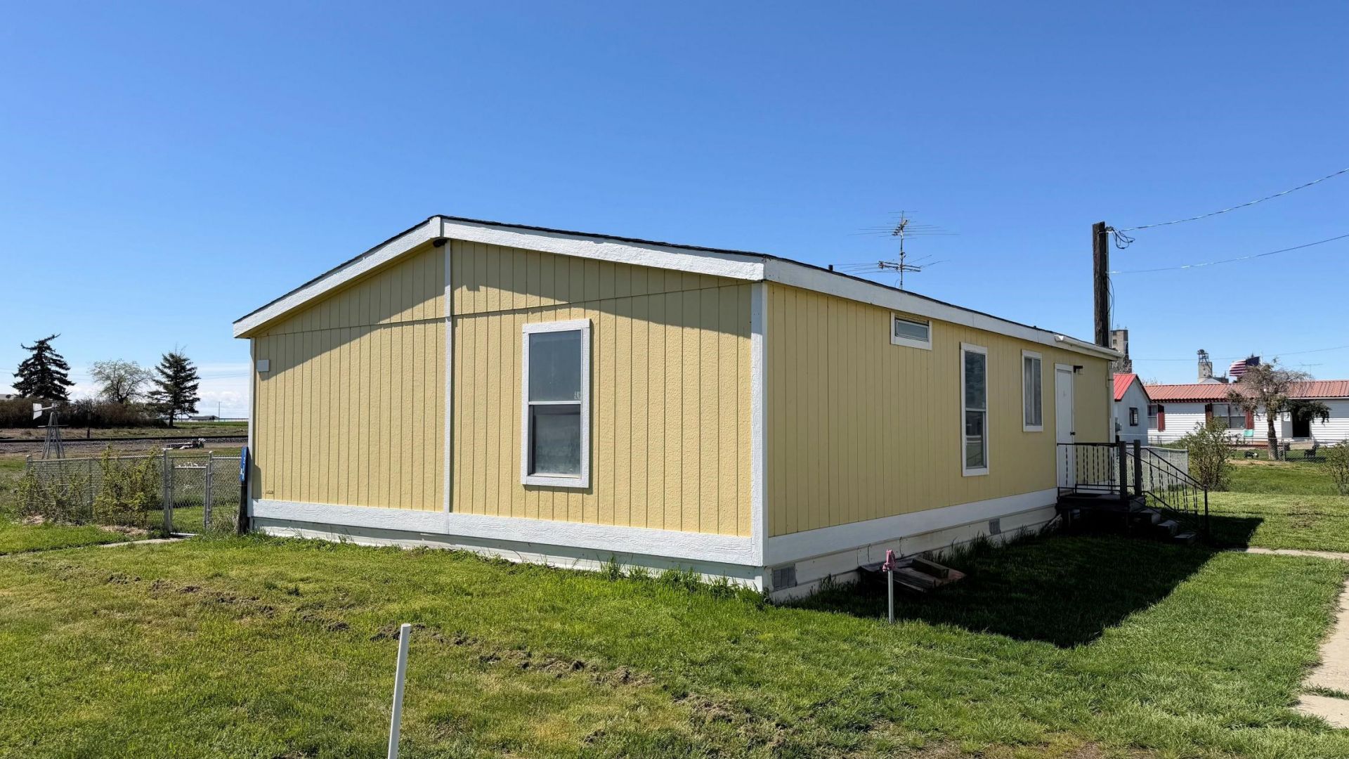 Check out this 3 bedroom, 2 bathroom home on oversized corner lot in Davenport! Located at the southeast edge of town, watch the sunrise over the fields from your covered front deck! The home sits on a 125X100 lot with a fully fenced front yard. Home boasts a master bedroom with a master bath, living room, cozy kitchen area / eating area and 2 good sized bedrooms and a 2nd full bath. Single car garage / shop. A great location at the edge of town at a wonderful price!